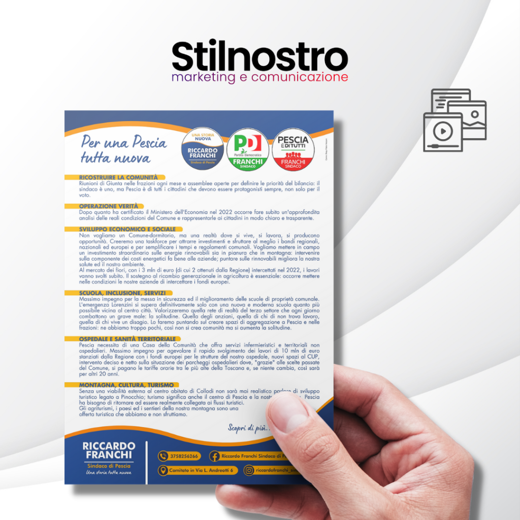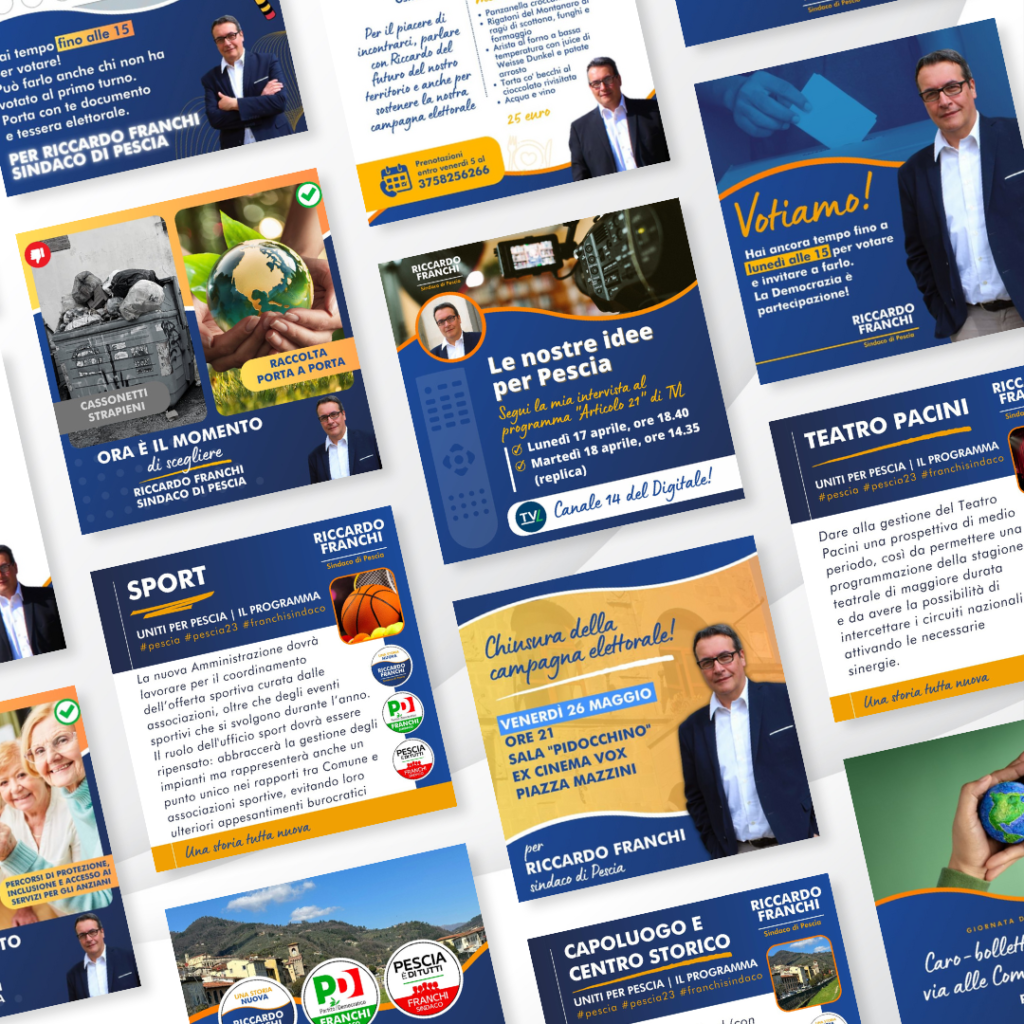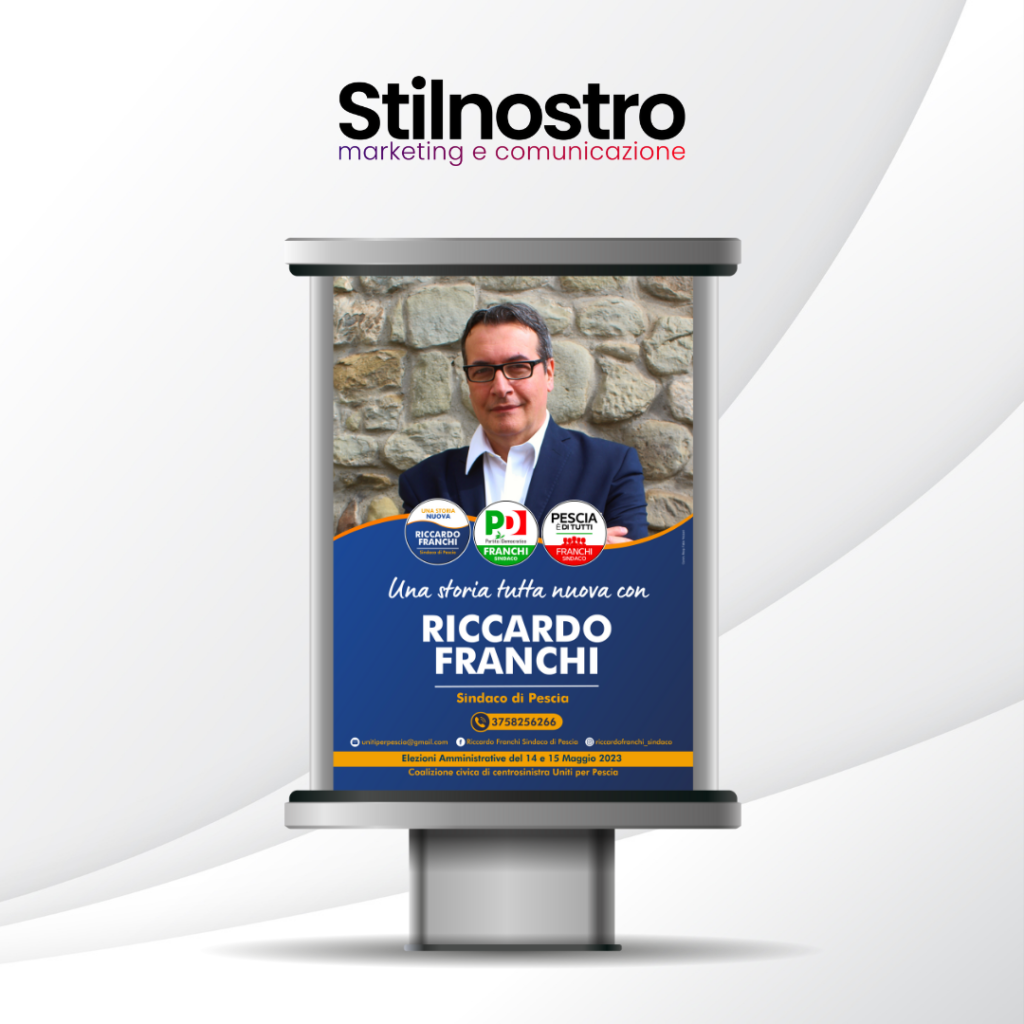 In occasione delle elezioni amministrative 2023 nel Comune di Pescia, in Provincia di Pistoia, abbiamo curato l’intera campagna di comunicazione del candidato a sindaco Riccardo Franchi.