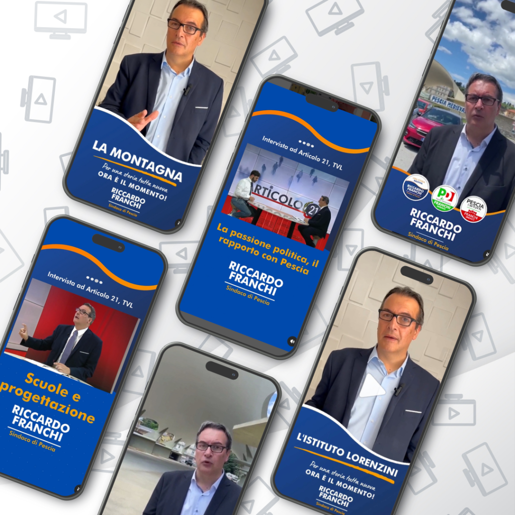Ci siamo occupati della produzione di contenuti a 360°: foto promozionali di Franchi e dei candidati al Consiglio comunale della coalizione, comunicati stampa e copy per i social media e le brochure, video e grafiche per Facebook e Instagram, volantini e manifesti etc.