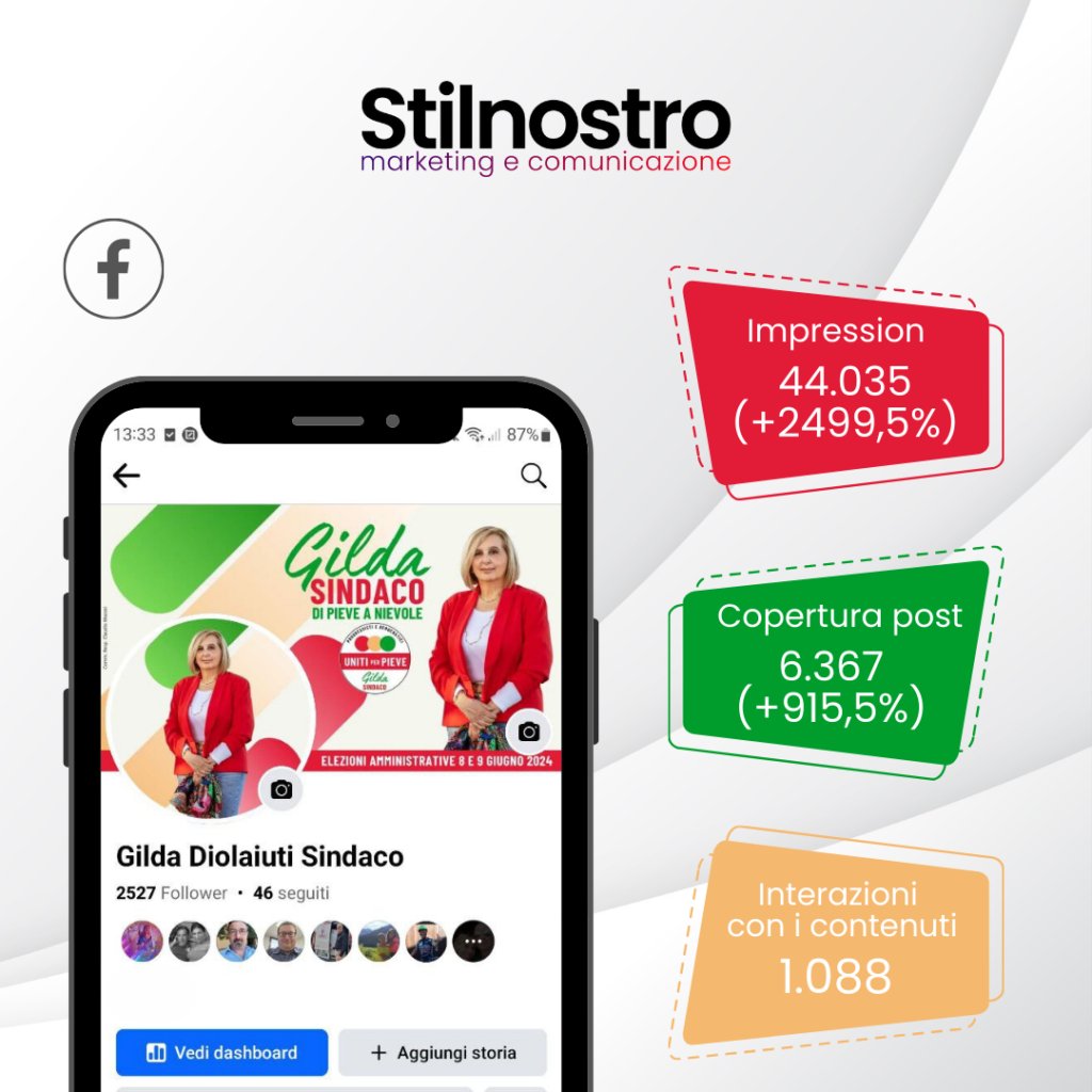 Nell’arco di tempo che va dal 1° aprile al 9 giugno 2024, sulla pagina Facebook di Diolaiuti abbiamo generato oltre 44mila impression e aumentato la copertura del 915%. Sia su Facebook che su Instagram abbiamo registrato numeri in forte crescita ottenuti esclusivamente in organico, ovvero senza sponsorizzazioni pagate.