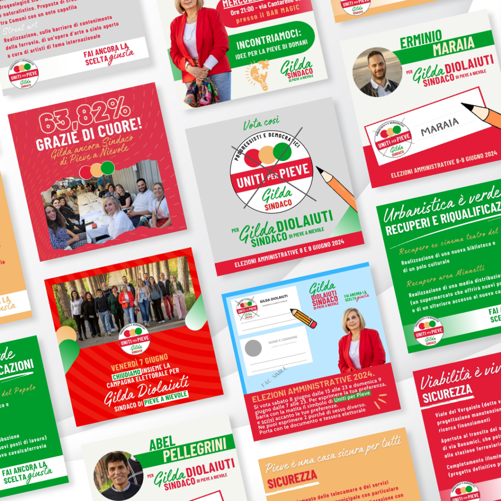In occasione delle elezioni amministrative 2024 nel Comune di Pieve a Nievole, abbiamo curato la campagna di comunicazione della candidata Gilda Diolaiuti. Alle votazioni dell’8 e 9 giugno, Diolaiuti è stata eletta con il 63,82% delle preferenze.